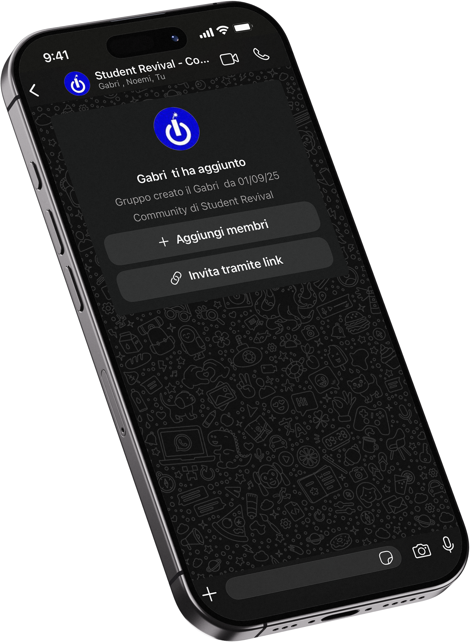 Un gruppo WhatsApp con tutti gli studenti di medie, superiori e università parte di Student Revival. Il modo migliore di rimanere aggiornati su tutto!