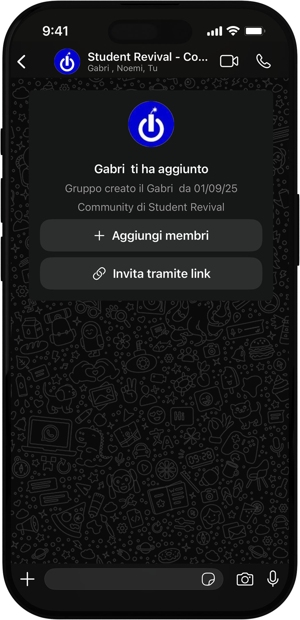 Un gruppo WhatsApp con tutti gli studenti di medie, superiori e università parte di Student Revival. Il modo migliore di rimanere aggiornati su tutto!